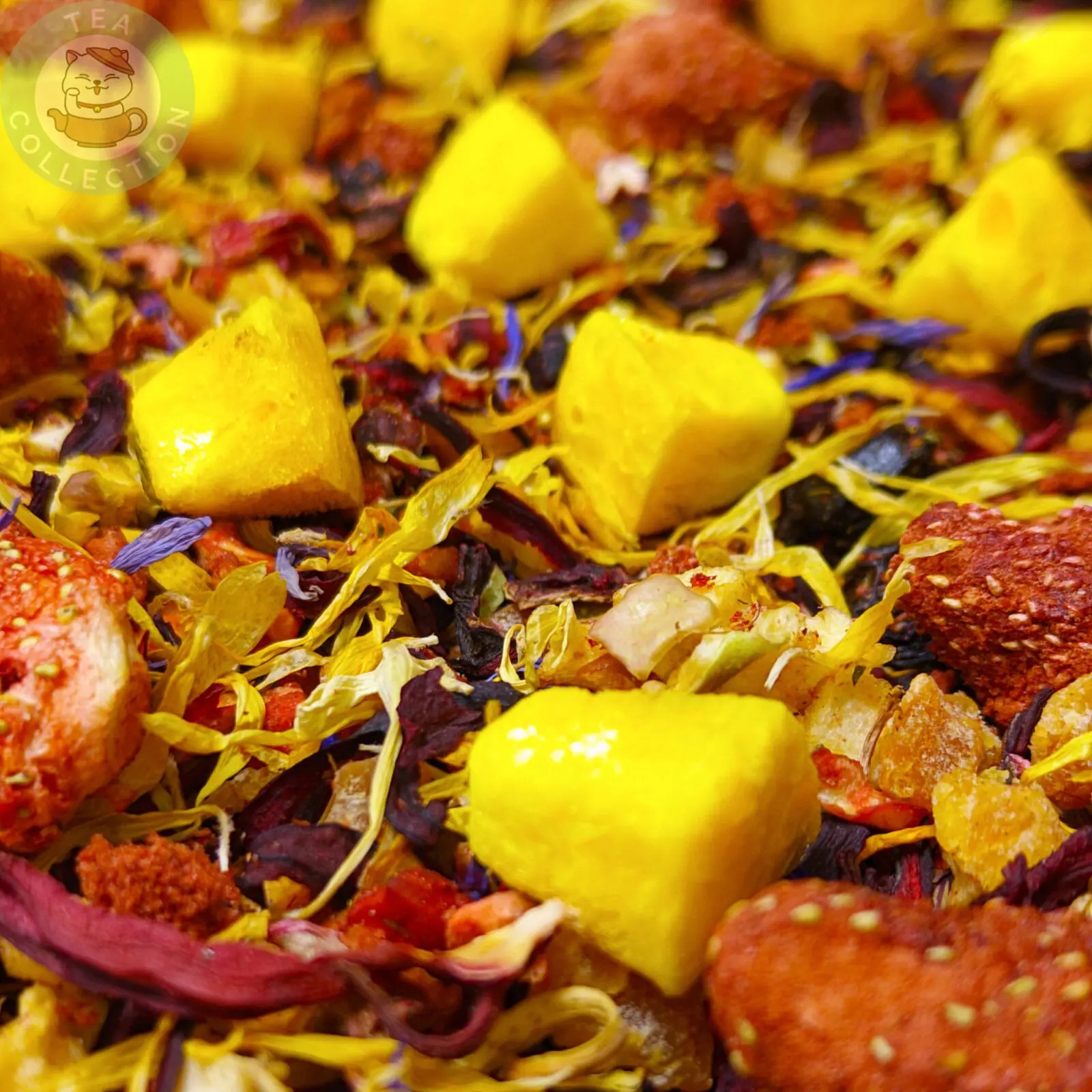 Цветки календулы усиливают цветочный букет чая и дарят лёгкую терпкость. Календула оказывает положительное влияние на пищеварение, улучшает состояние кожи и помогает организму бороться с инфекциями.