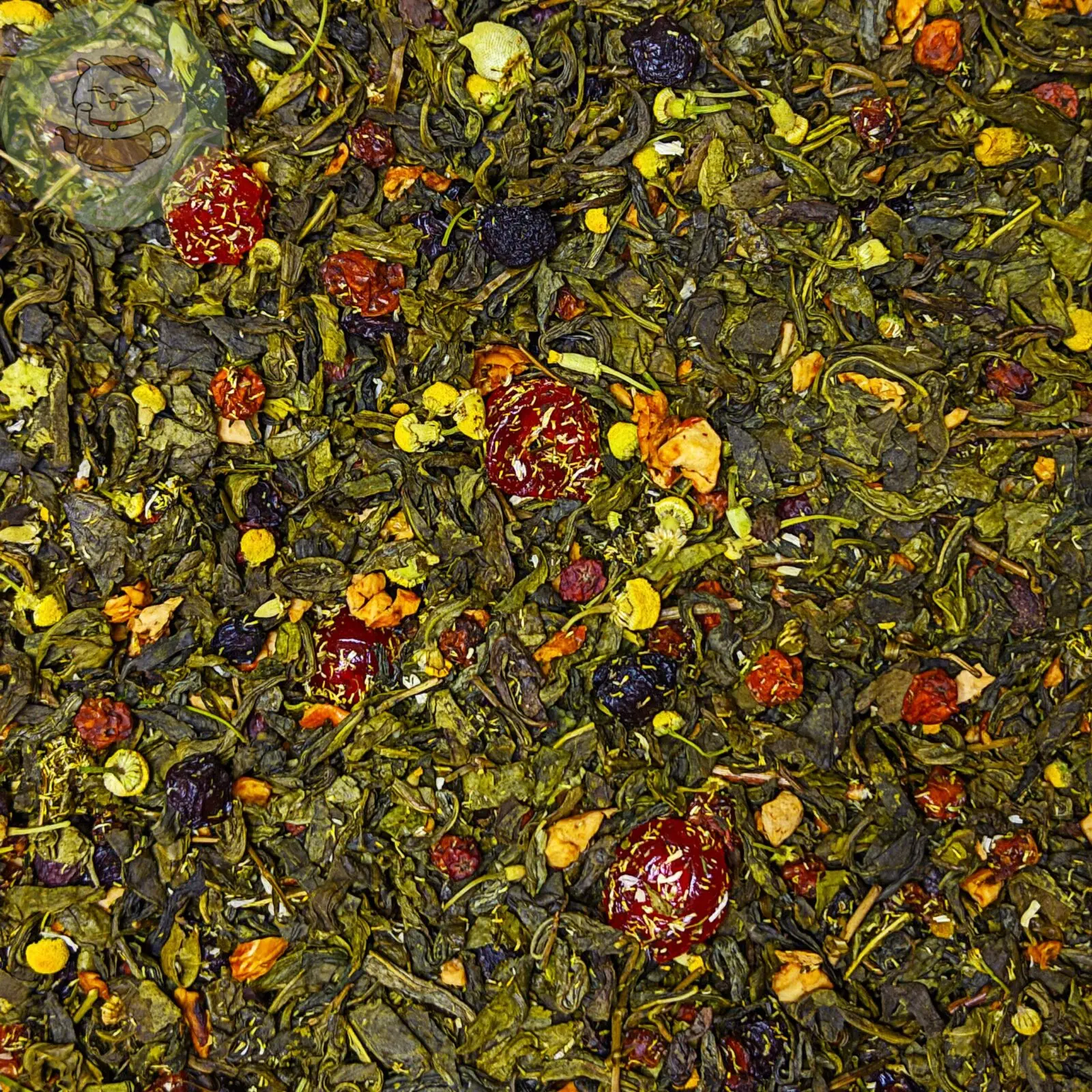 - Зелёный чай — даёт лёгкую свежесть, мягкую травянистость и аккуратную терпкость, служит основой для фруктов и трав.