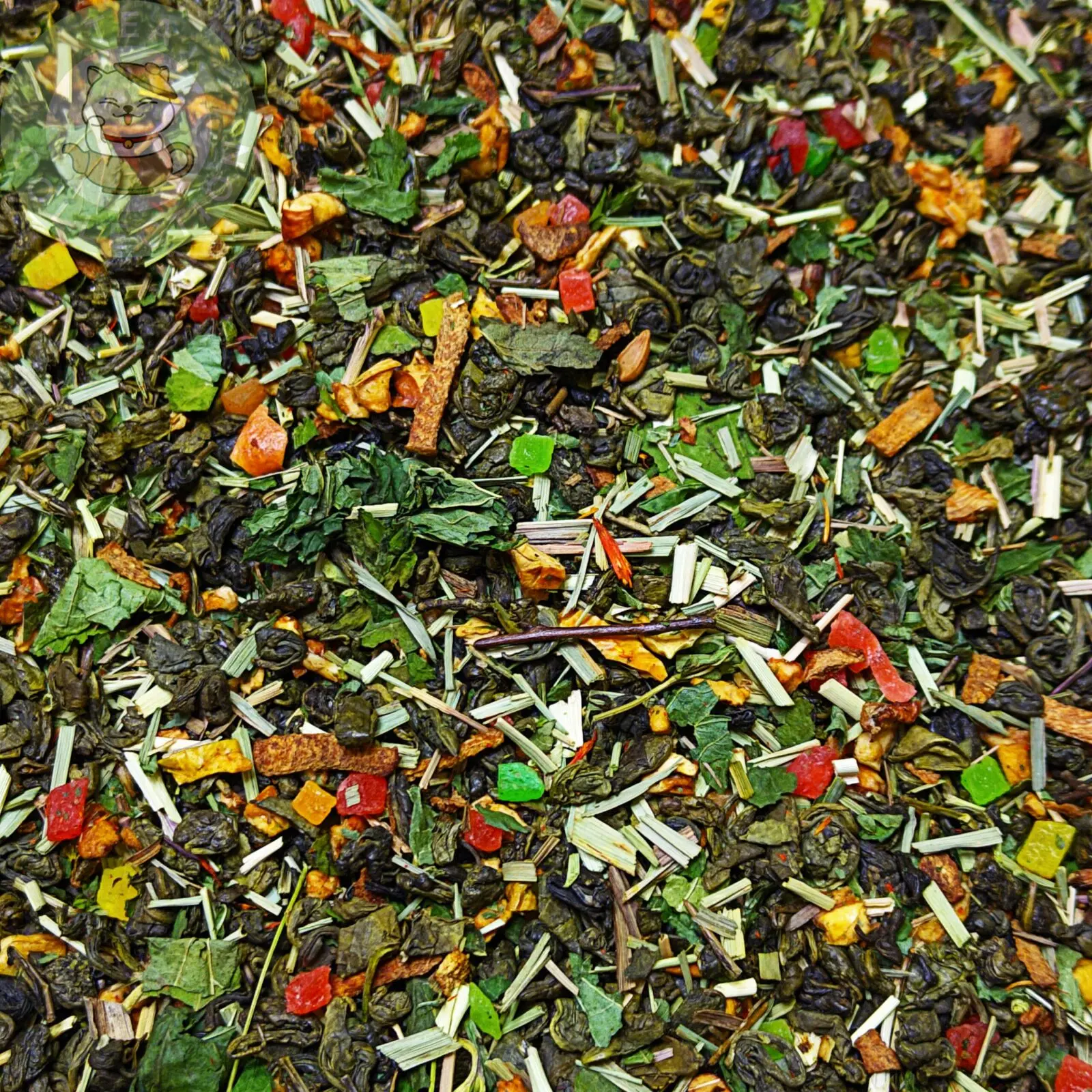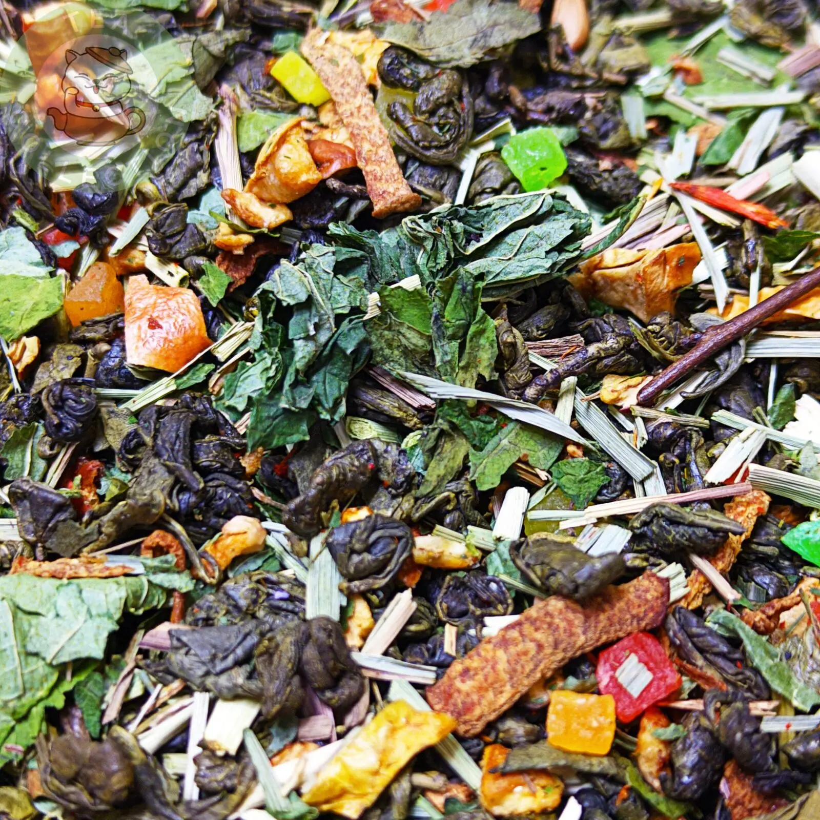Состав: Зеленый чай, груша, яблоко, лемонграсс, лист смородины, цукаты, розы.