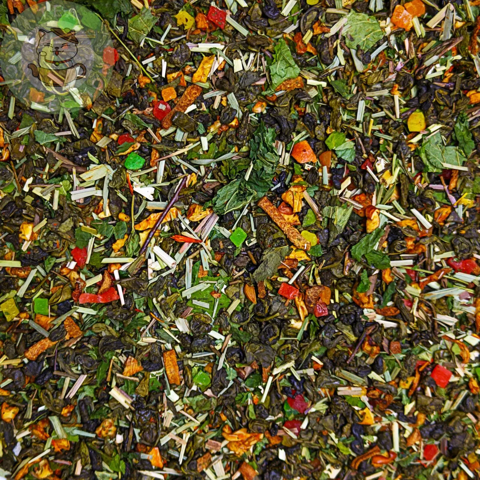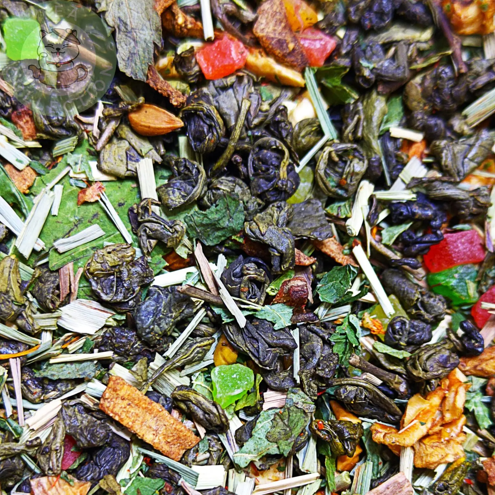 - Лемонграсс — привносит свежий цитрусовый оттенок, делает вкус живым, собирает сладость фруктов и не даёт чаю стать тяжёлым.