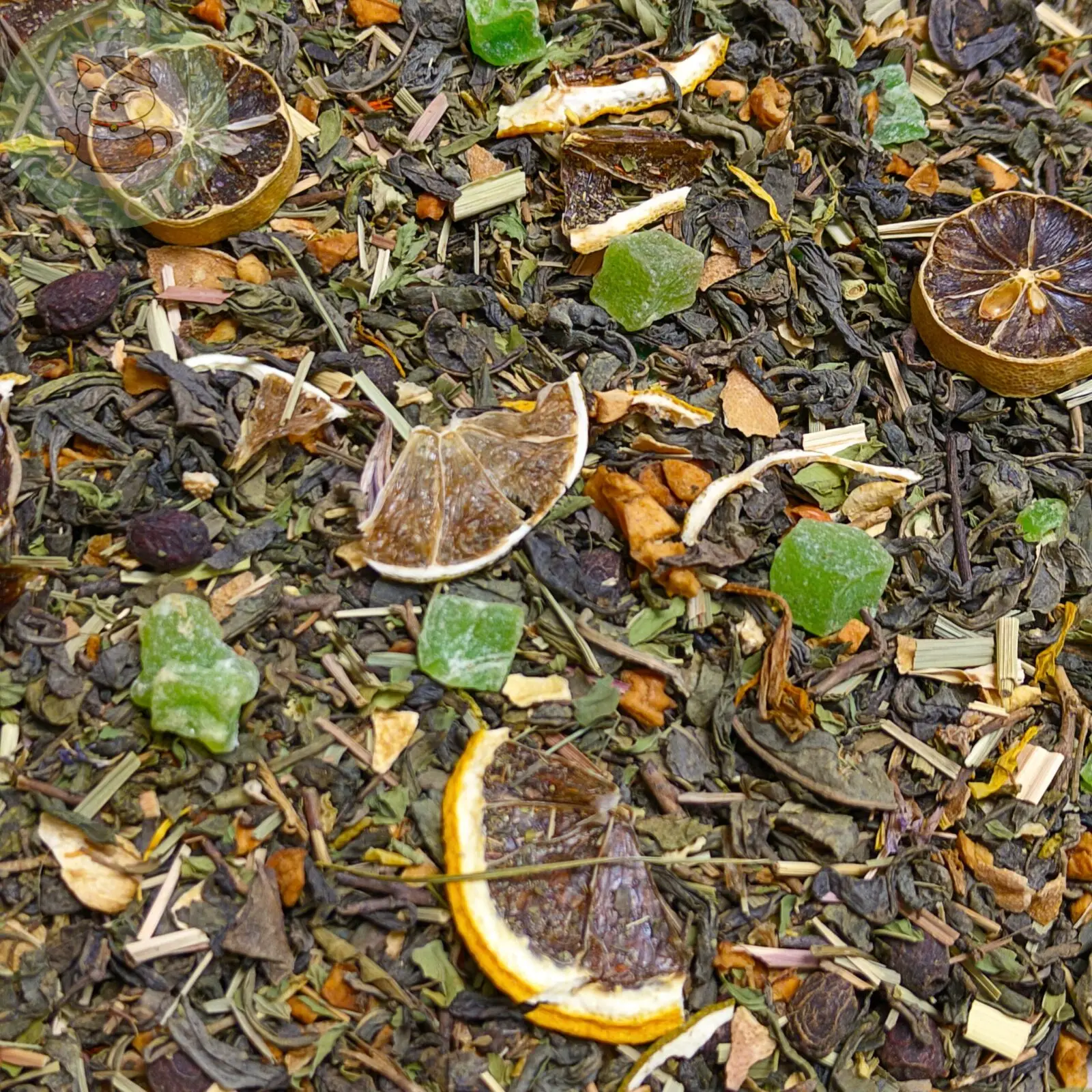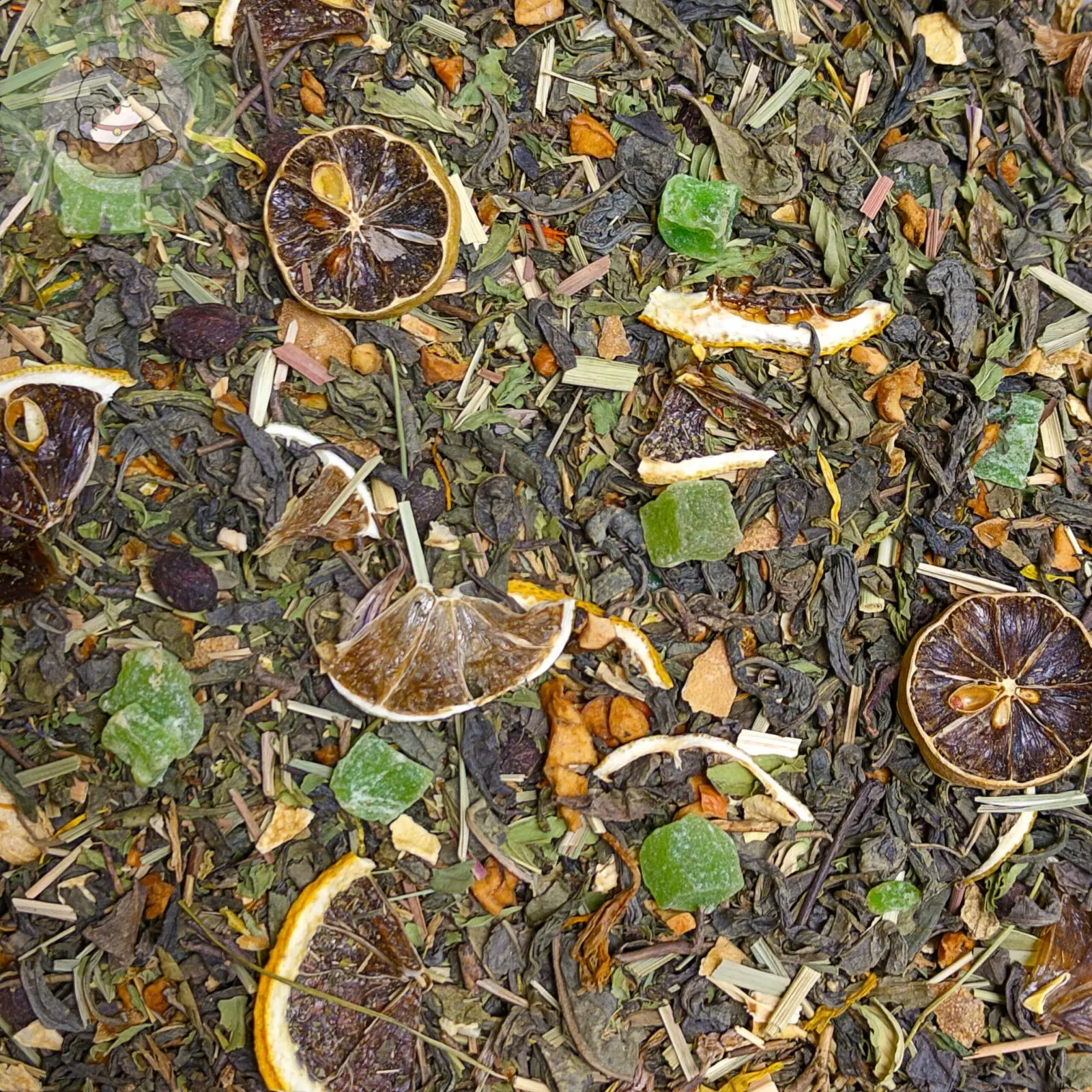 Состав: зелёный чай, боярышник, мята, цукаты, лимон.