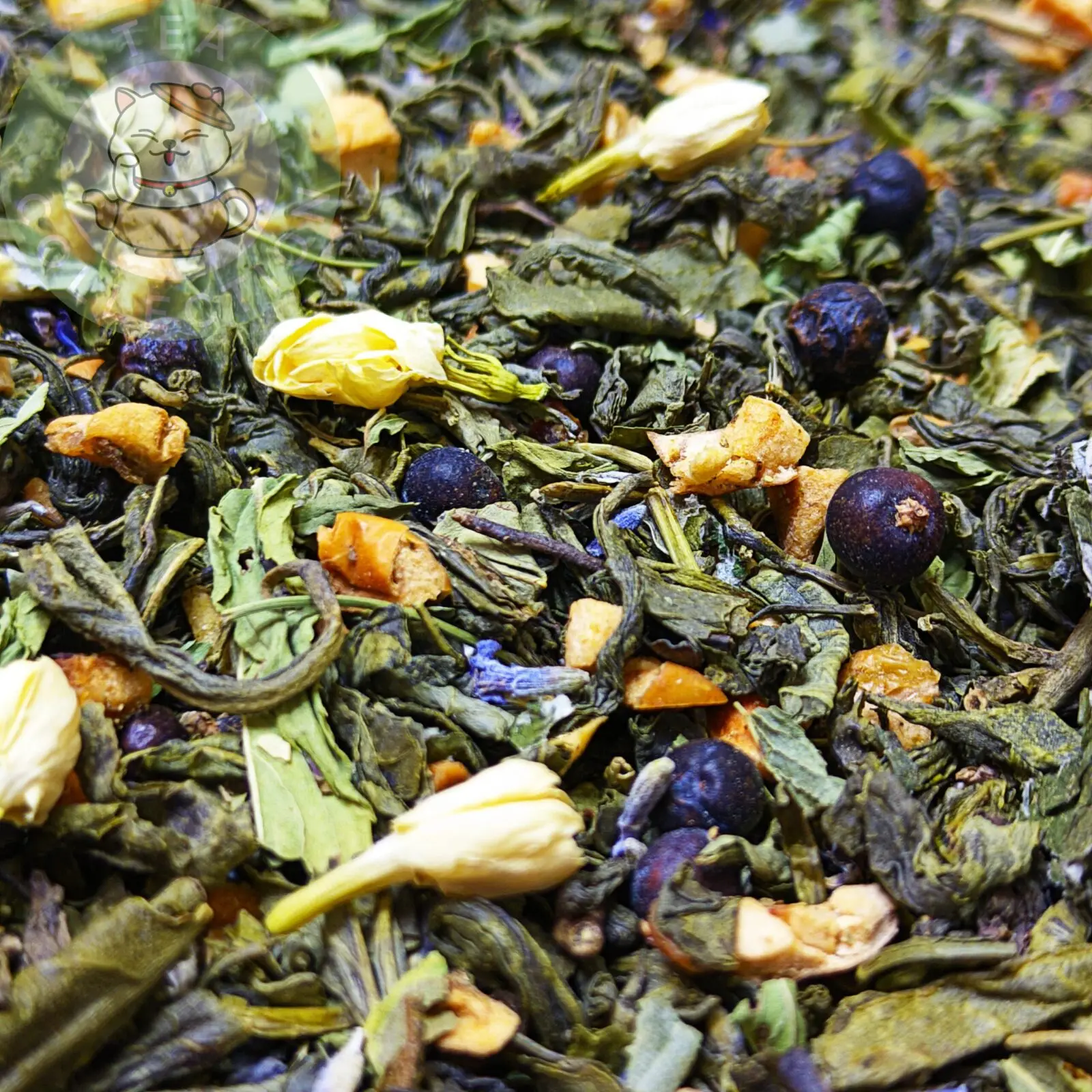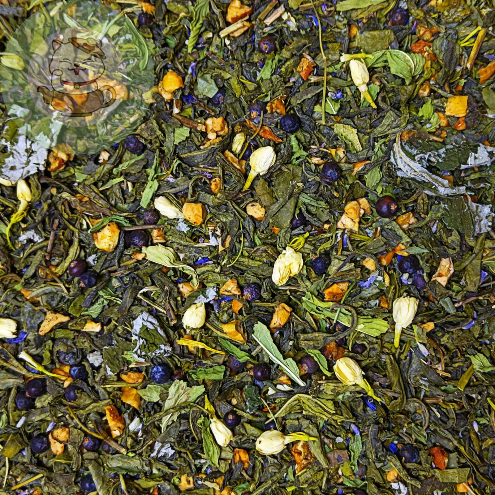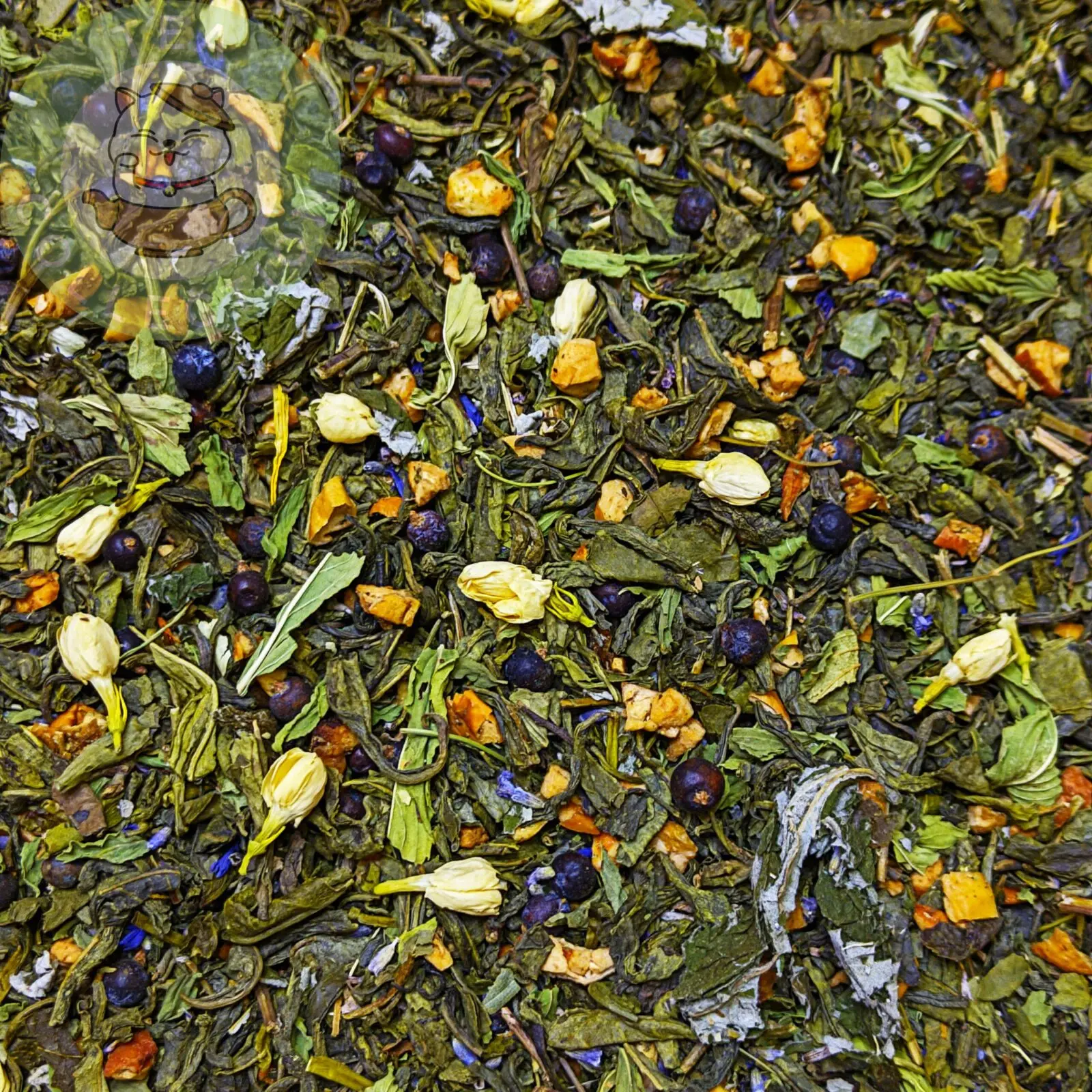 Состав: зелёный чай, жасмин, мята, яблоко, лаванда, можжевельник, лист малины.