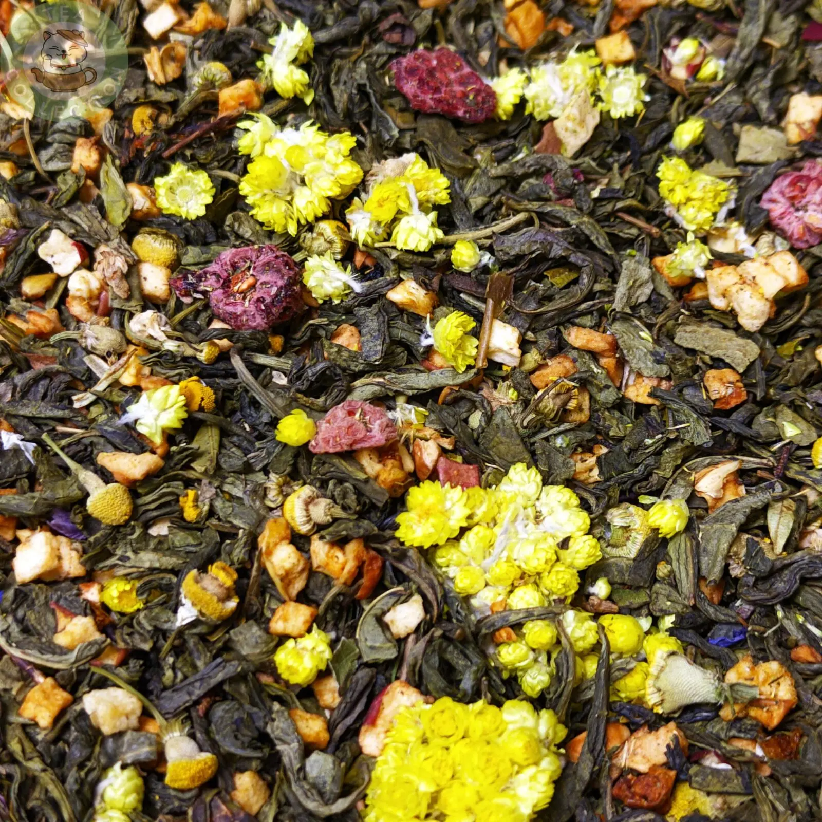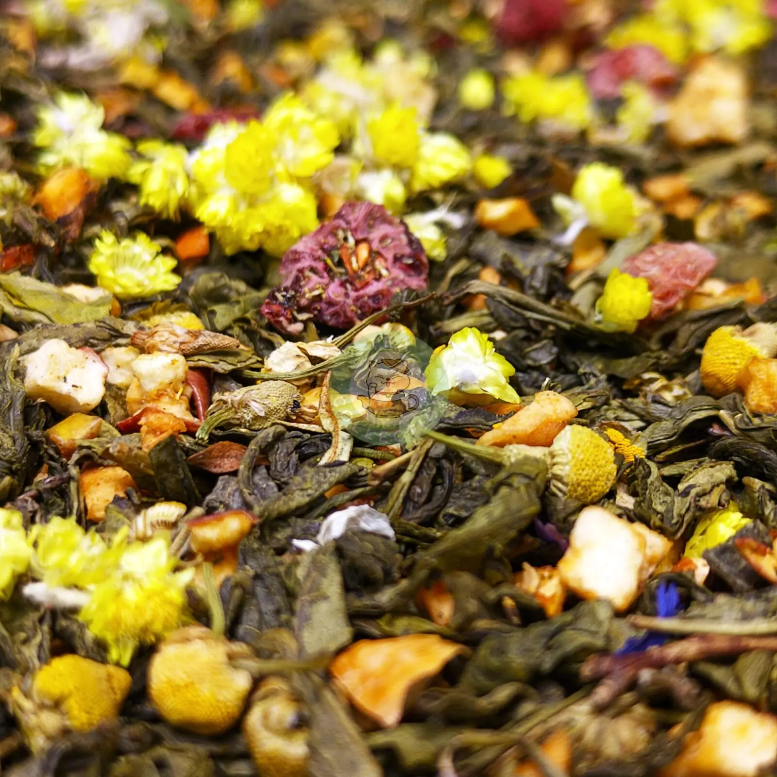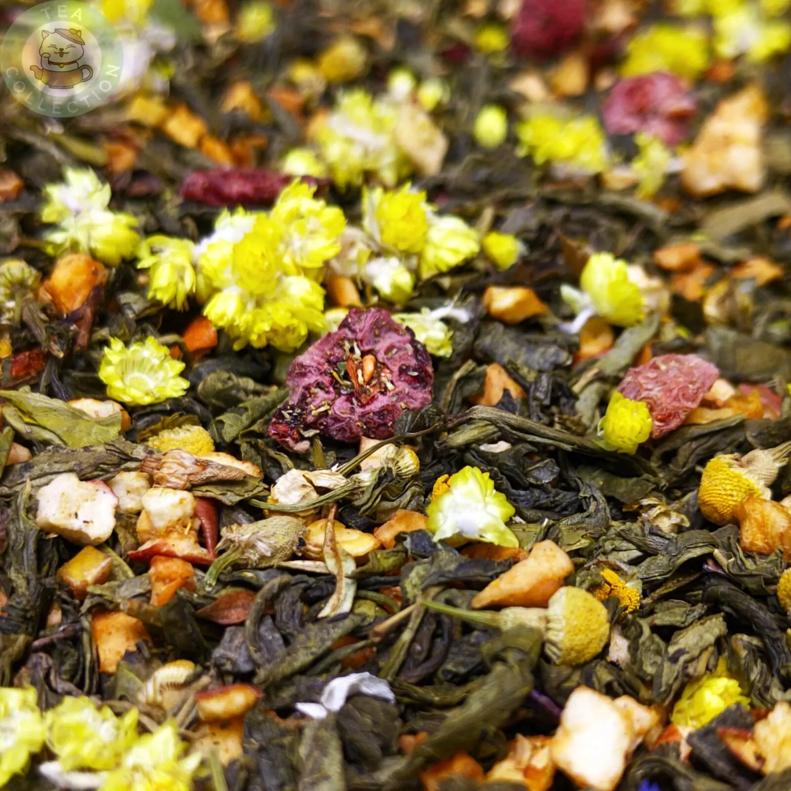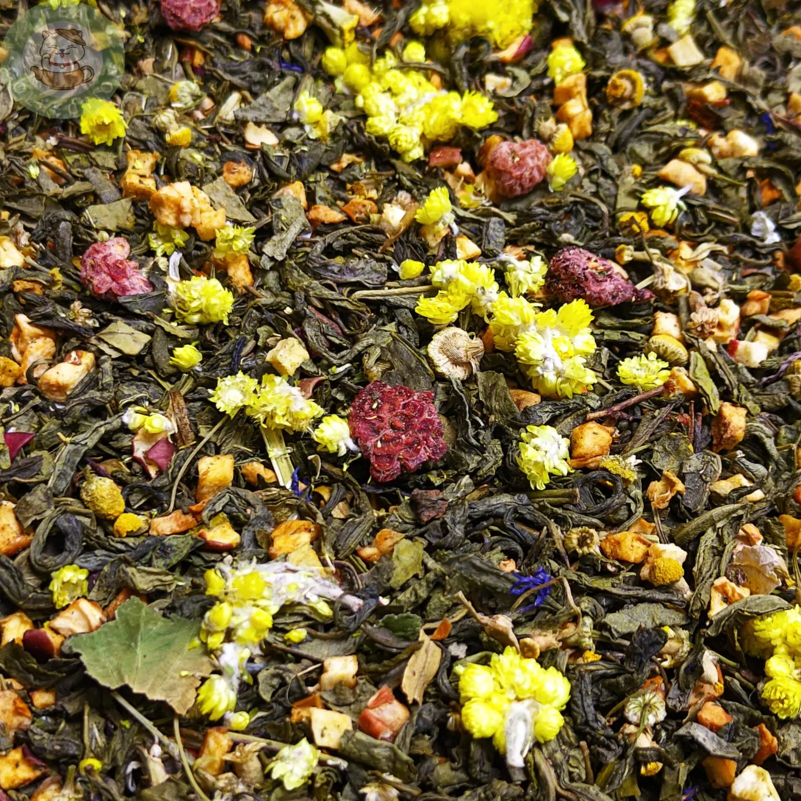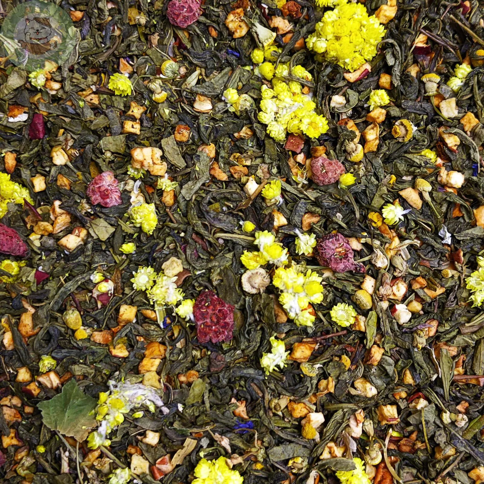 • Зелёный чай — даёт лёгкую свежесть, аккуратную травянистость и мягкую терпкость, служит базой для трав и фруктов.