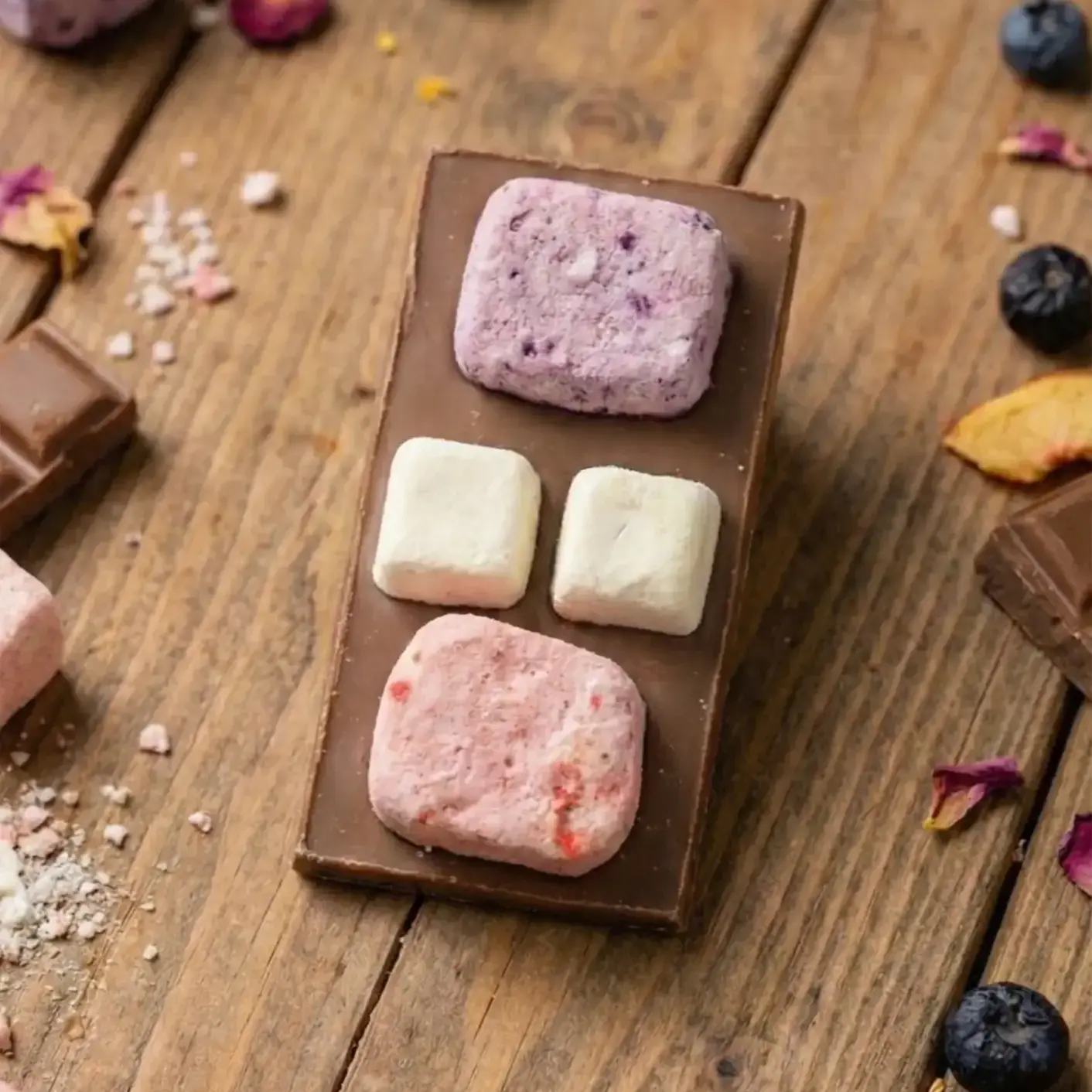 Это не «обычная плитка на каждый день», а десертный шоколад, который особенно хорошо сочетается с чаем и кофе. Сублимированный йогурт добавляет интересную текстуру и делает вкус более многослойным: сладость молочного шоколада звучит мягко, а фруктово-ягодная часть придаёт свежесть и приятное послевкусие.