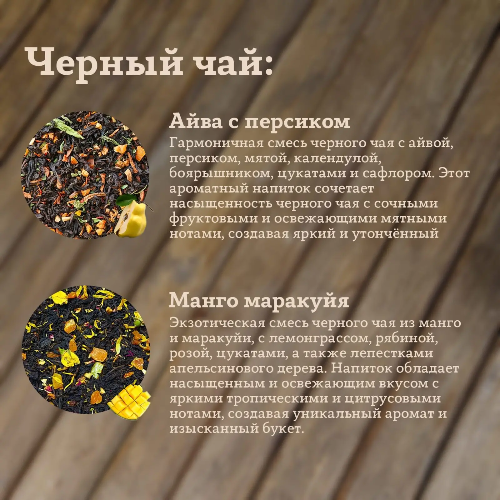 Внутри — четыре разных вкуса на чёрной основе, без резкой пряности и экстремальной кислинки. Это те чаи, которые приятно пить каждый день и не стыдно подарить.