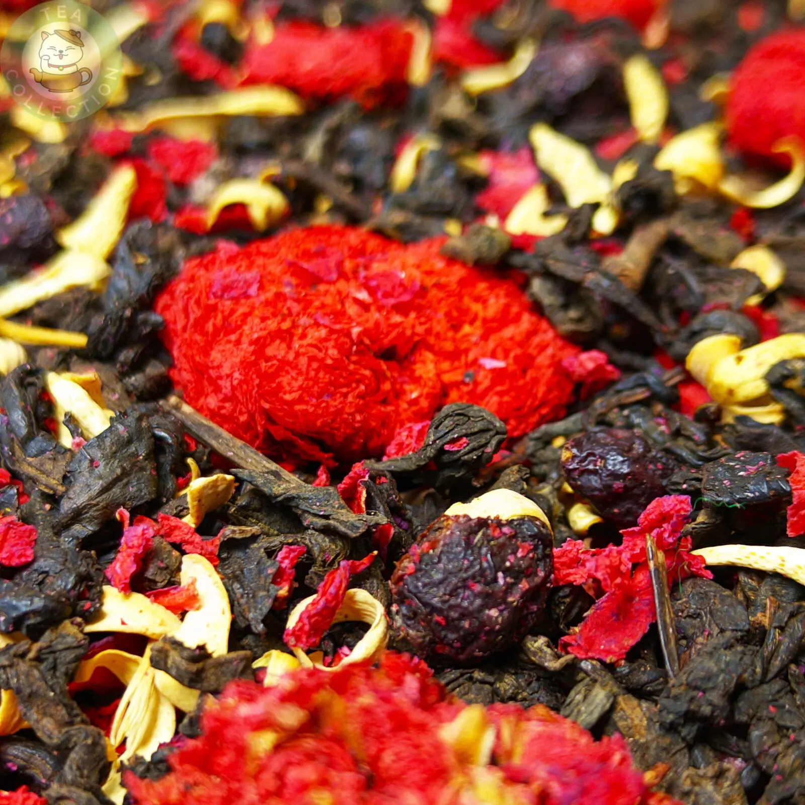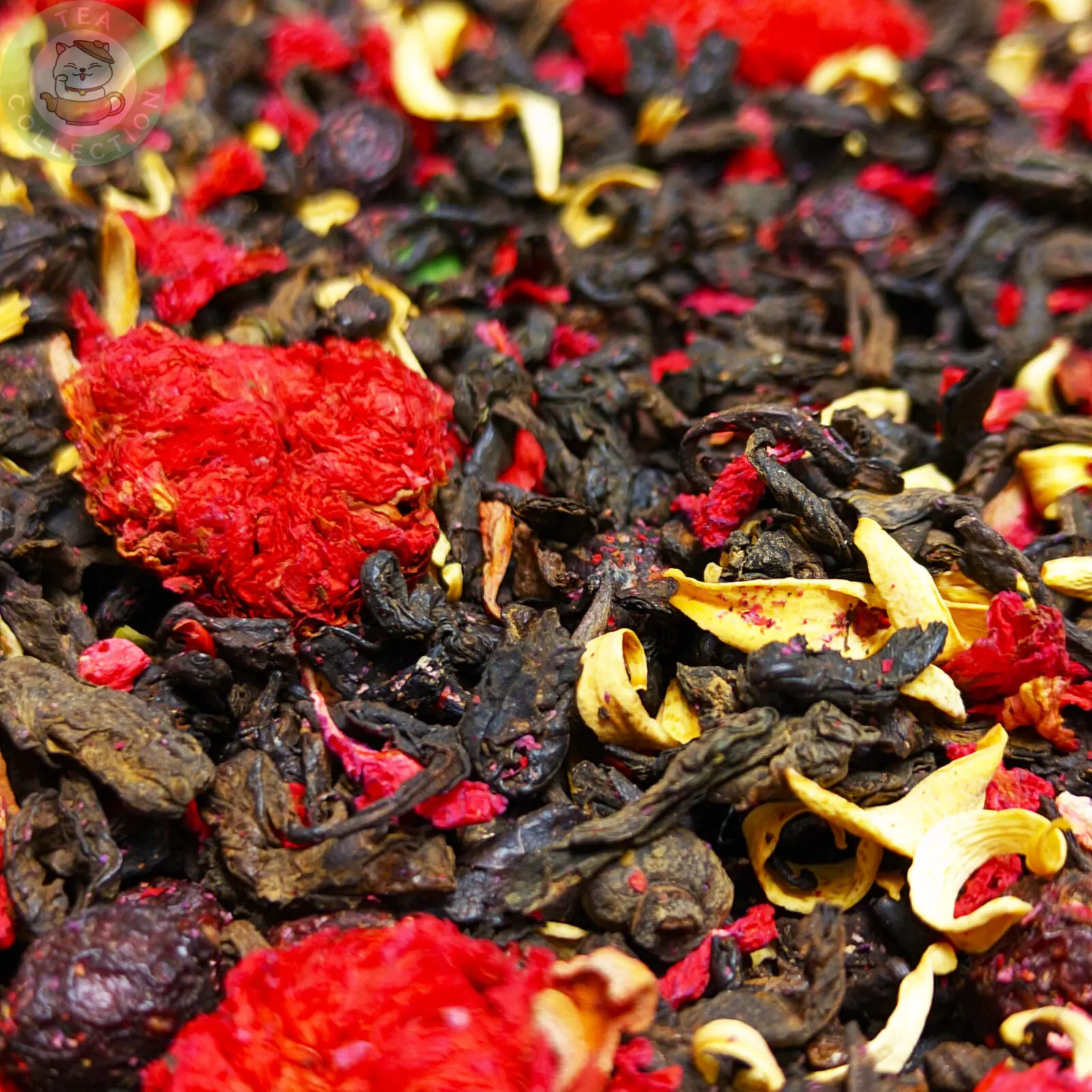 Это фирменный купаж ЧАЙ ШОП на основе шу пуэра с цветками граната, лепестками апельсинового дерева и боярышником. Чай для тех, кто любит тёмные, насыщенные настои, но хочет более мягкий, фруктово-цветочный характер без тяжёлой «землистости».