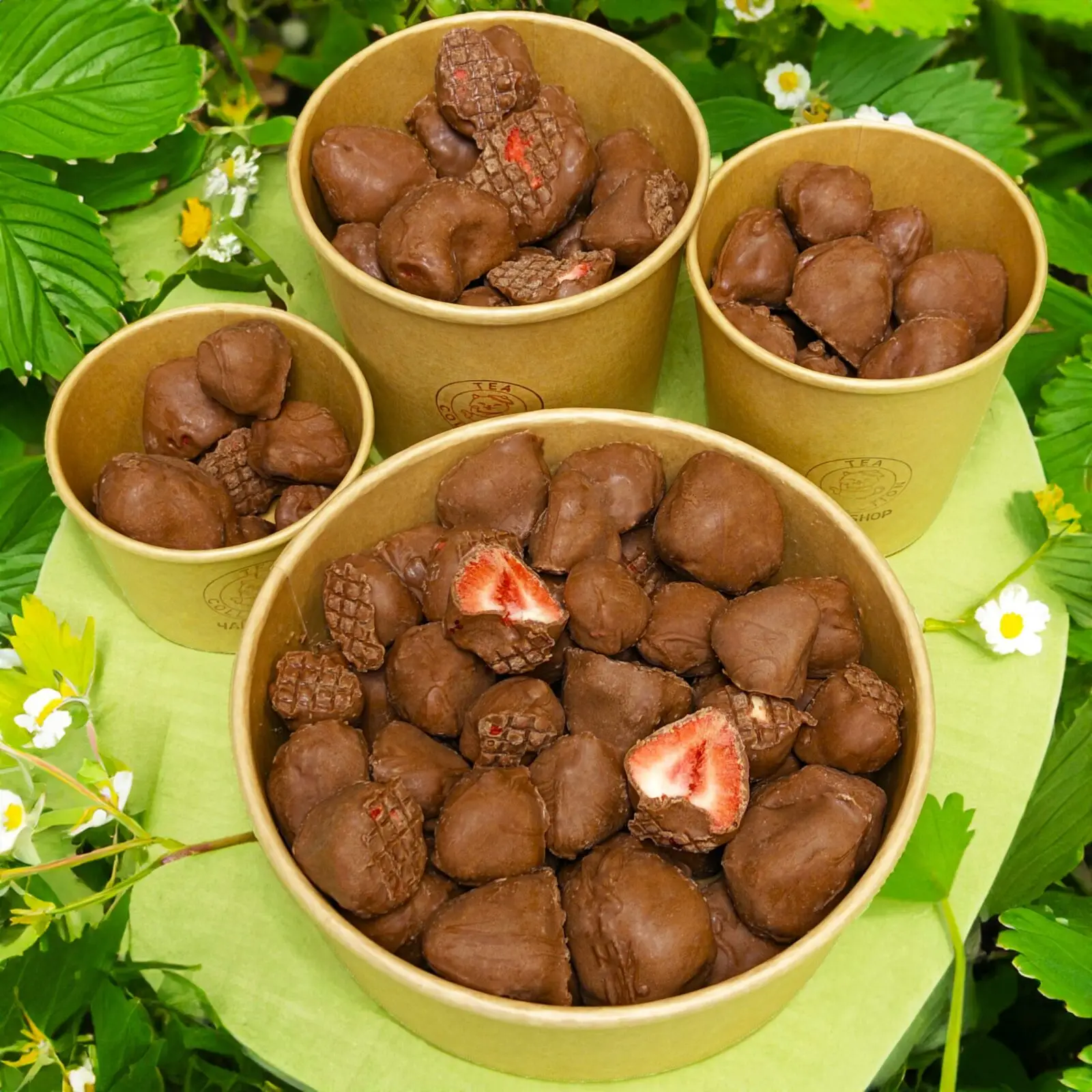 Мы — магазин авторского чая и сладостей ЧАЙ ШОП в Новосибирске, сайт www.чай.shop. У нас вы можете купить Сублимированную клубнику в молочном шоколаде отдельно или собрать с ней полный подарочный набор с чаем и другими десертами бренда «Шоколадный рай».