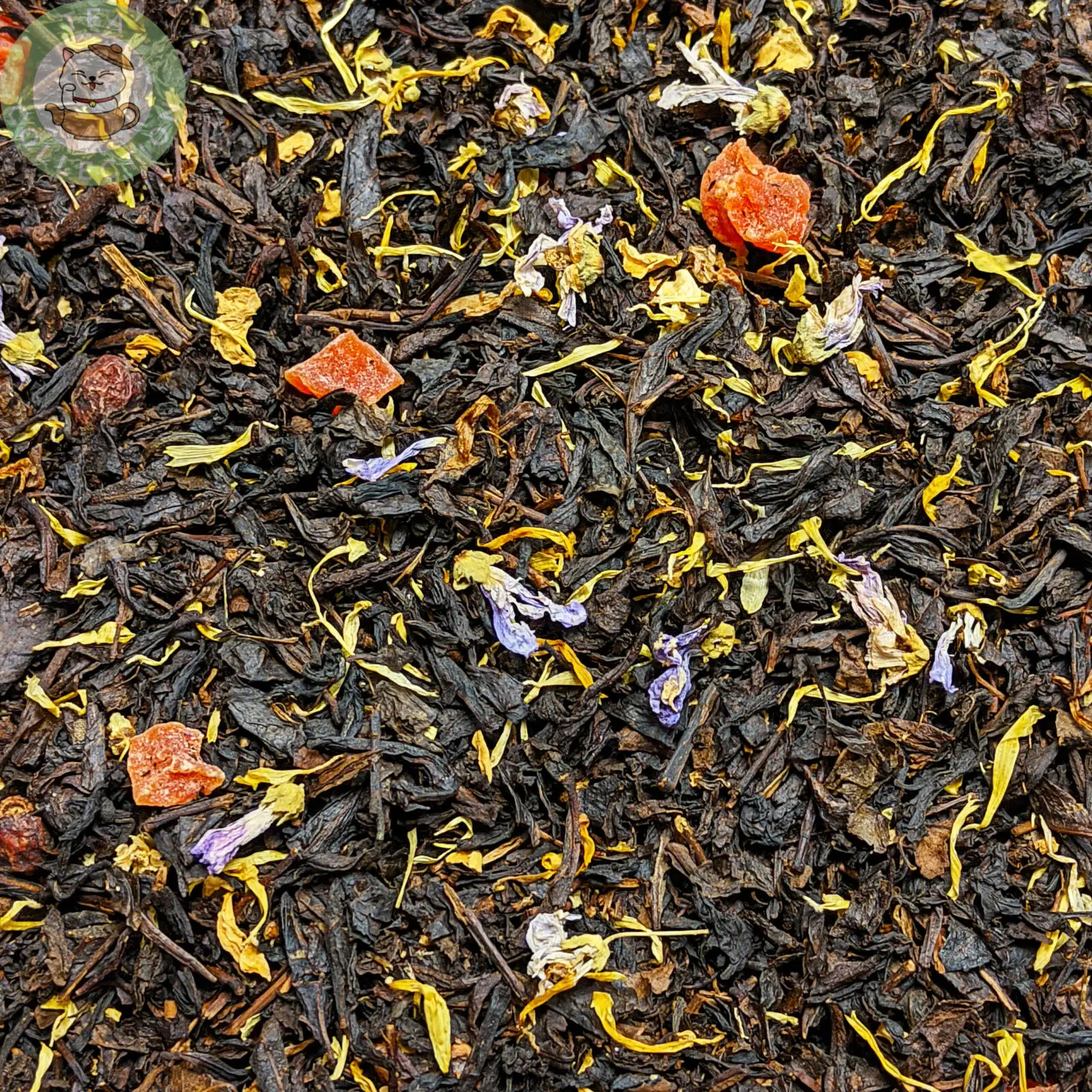 Состав: чёрный чай, вишня, календула, василёк, сафлор, цукаты.