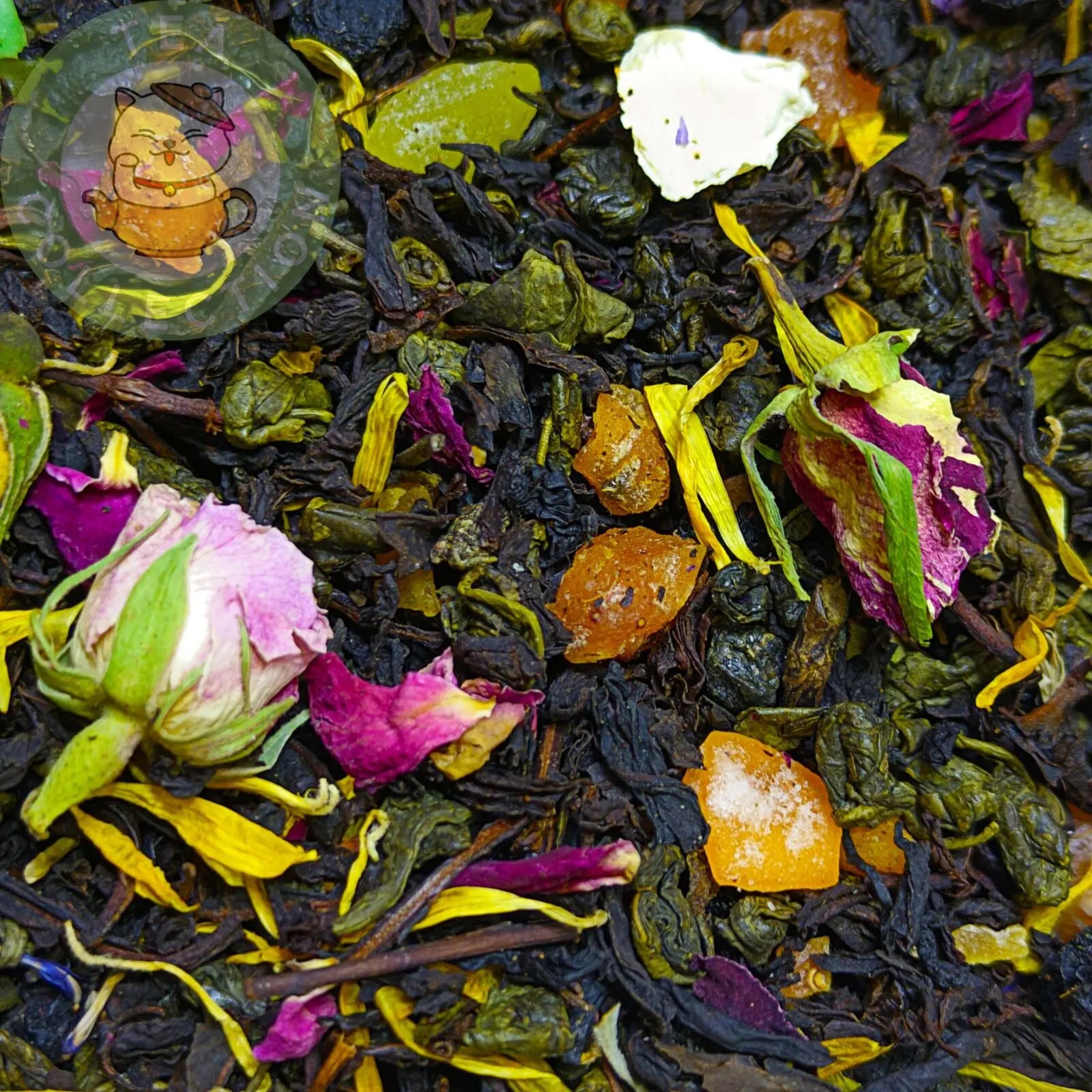 Состав: черны чай, зеленый чай, роза, изюм, арония.