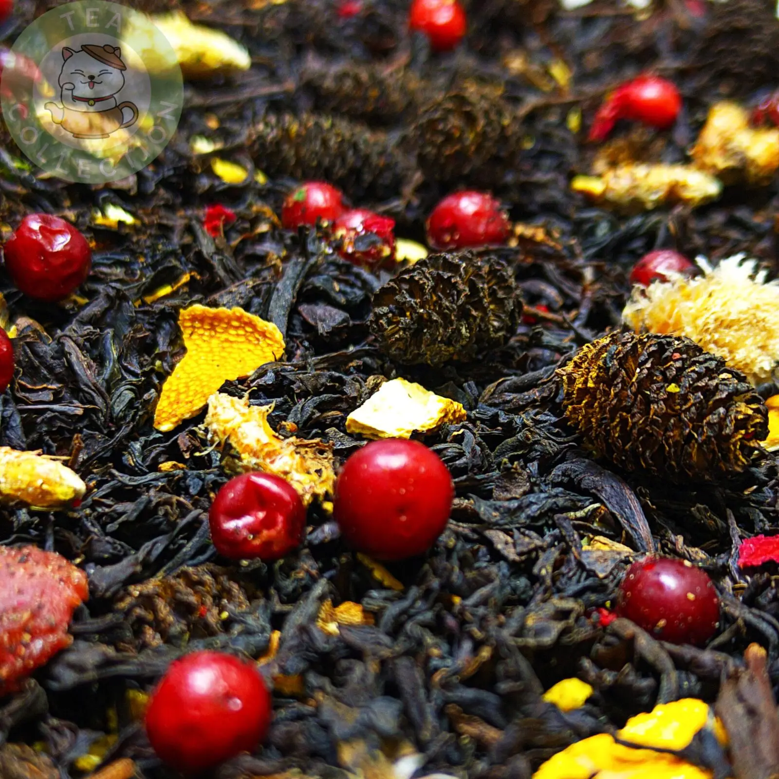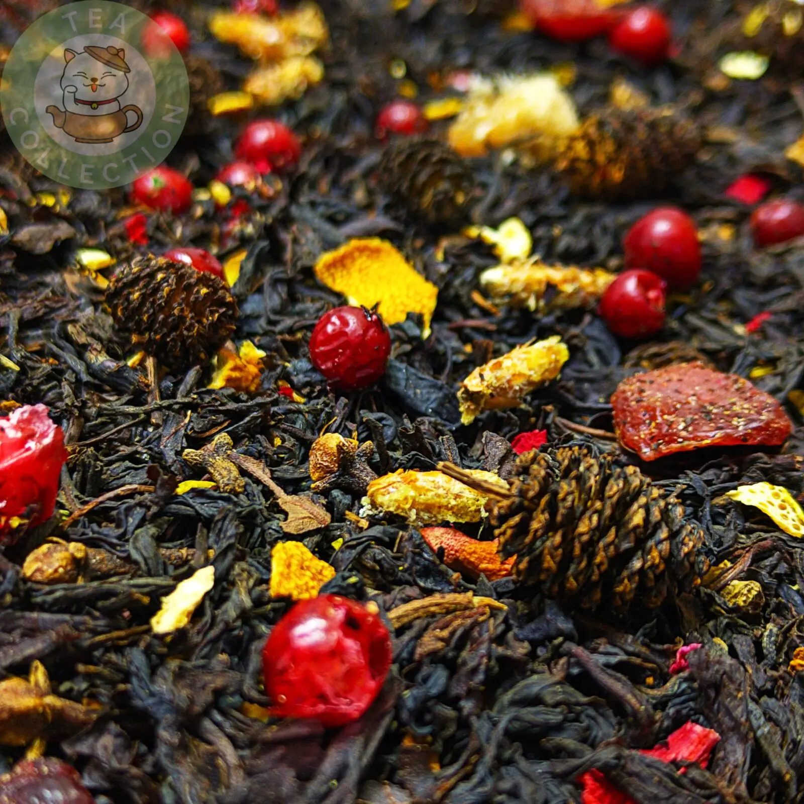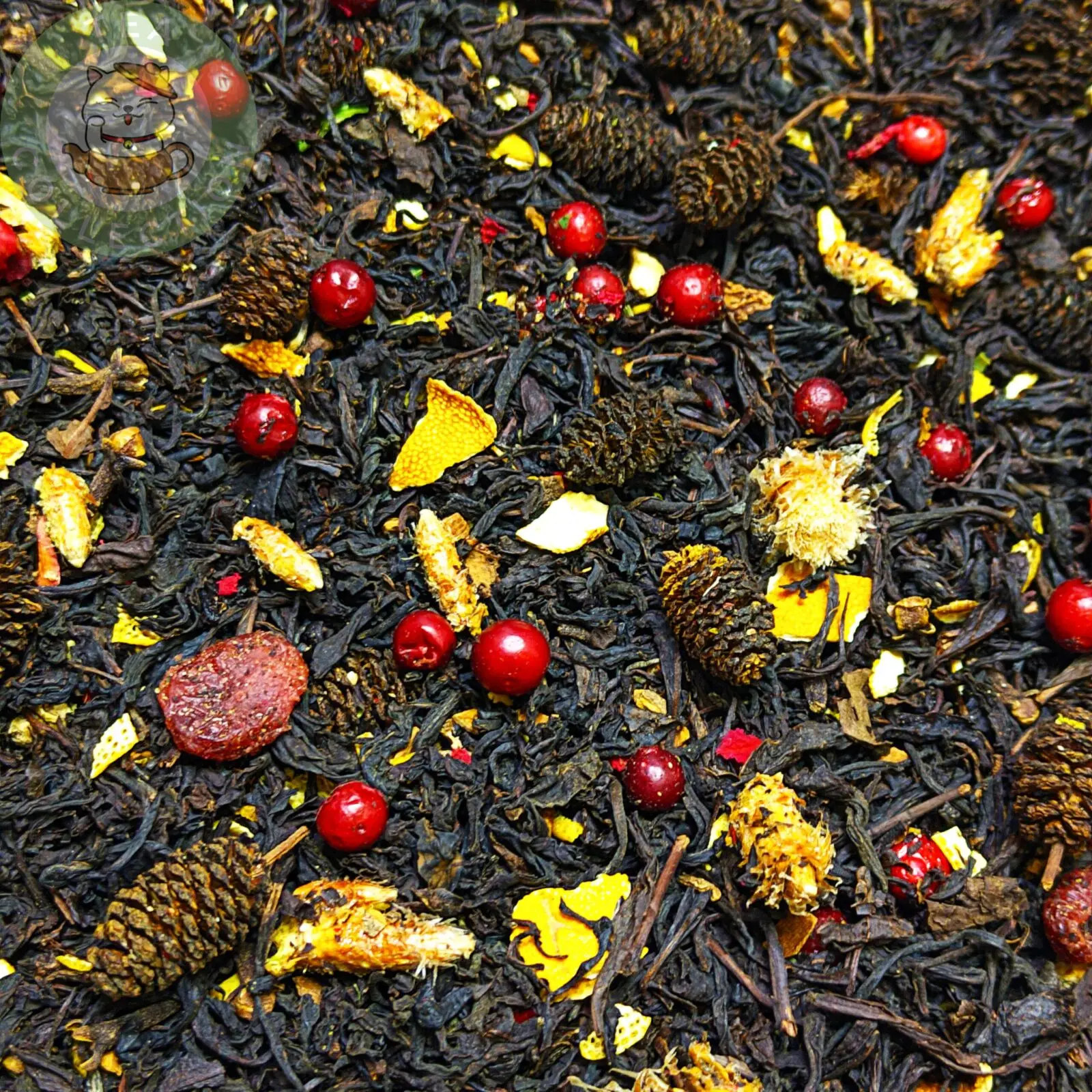 Чёрный чай «Еловая сказка» — это зимний, пряно-ягодный купаж с настоящим лесным характером: смородина, клюква, хвоя и пряности превращают обычную кружку чая в маленькую новогоднюю историю.