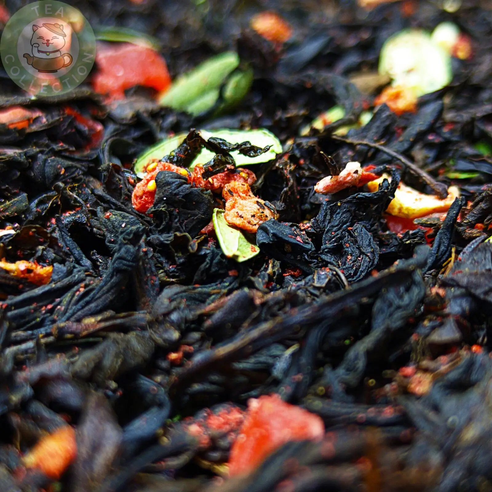 - Чёрный чай — даёт насыщенную основу, мягкую терпкость и классический «чайный» характер.