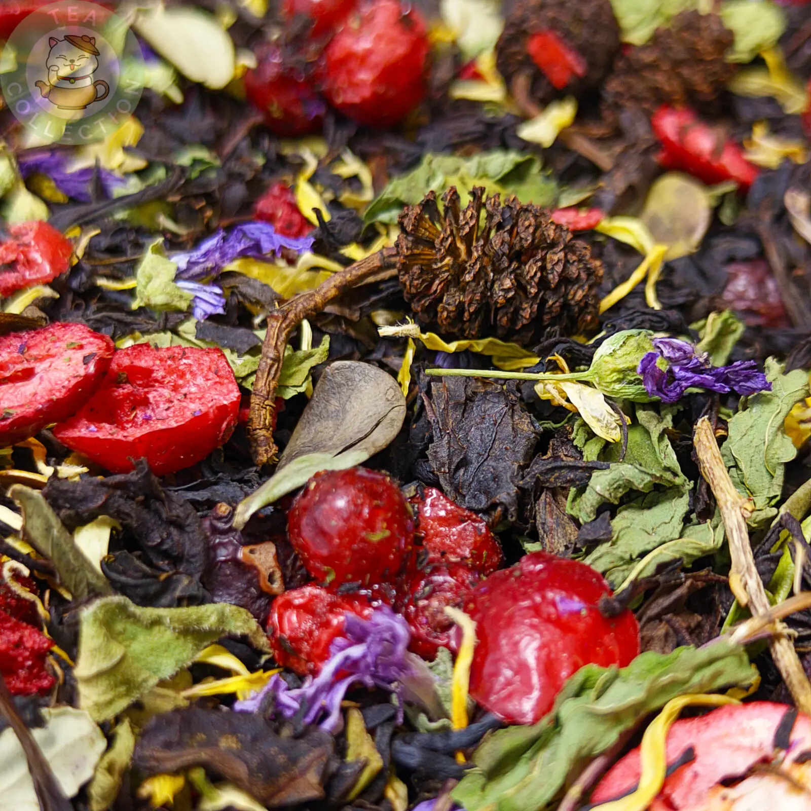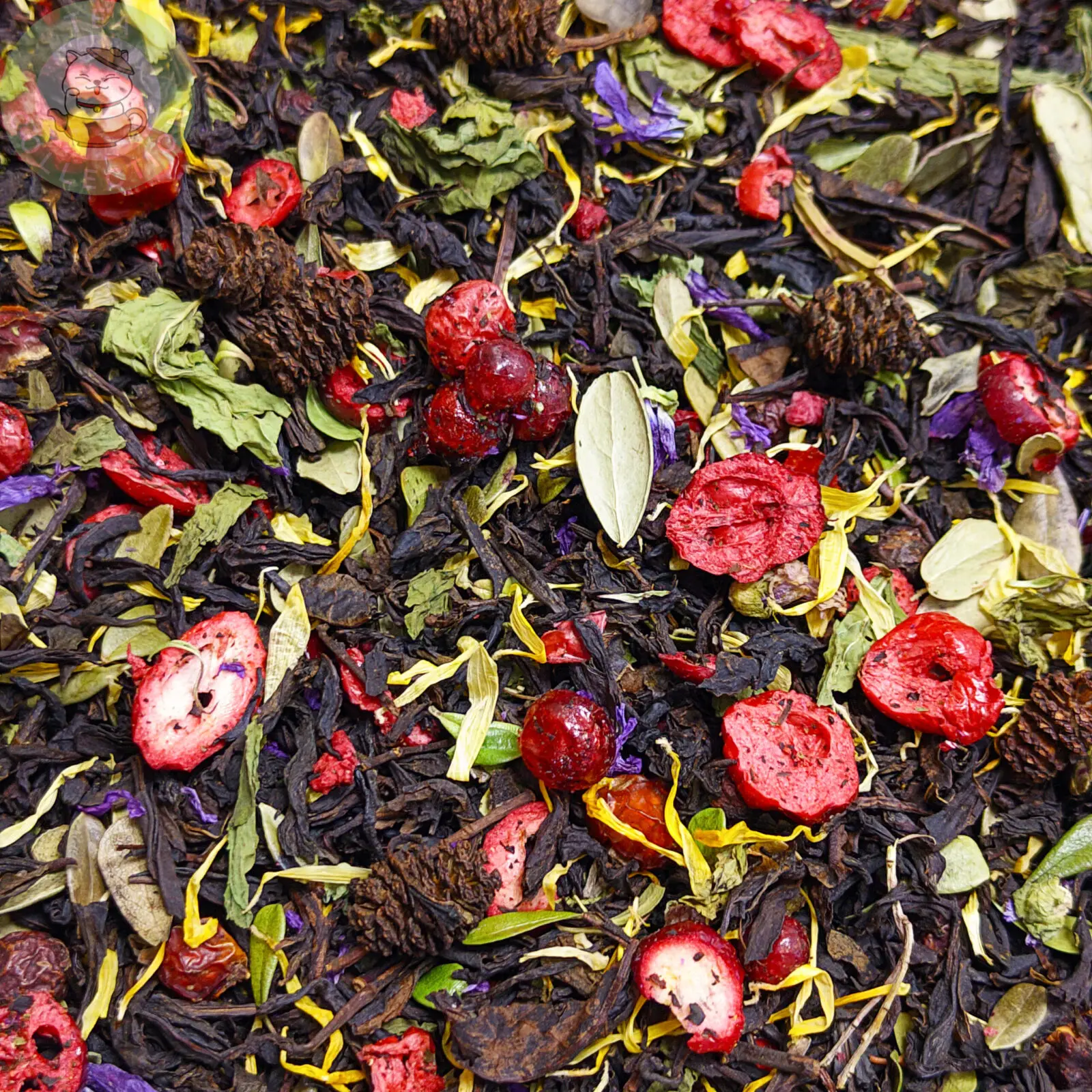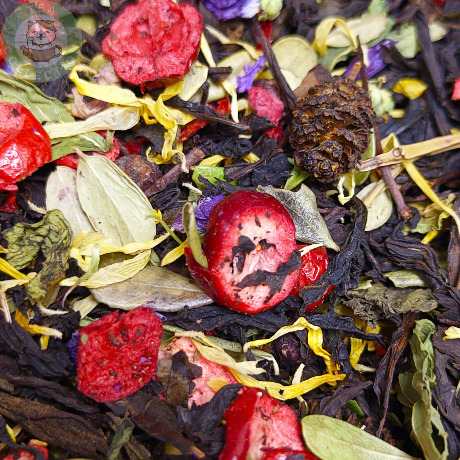 Состав: чёрный чай, смородина, клюква, василёк, календула, лист брусники, шишка, арония, боярышник, мята, шиповник.